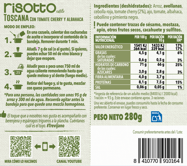 Alérgenos: Puede contener trazas de sésamo, mostaza, avellanas, apio, sulfitos, cacahuete, soja y huevo. Contiene gluten.