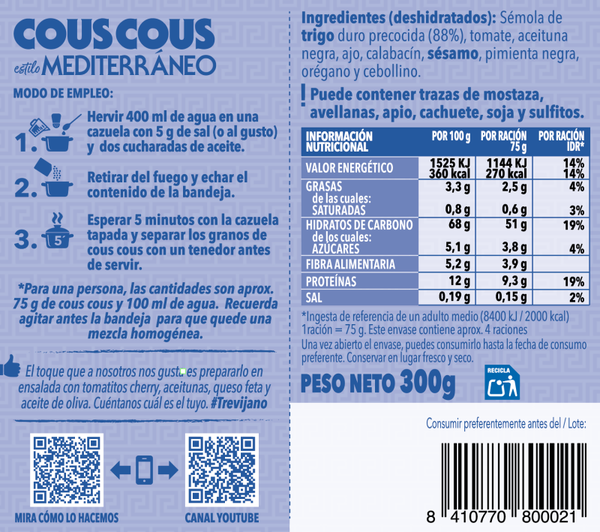 Con el cous cous Mediteráneo no necesitas nada más que agua, aceite y sal para comer rico y saludable, estés dónde estés.
