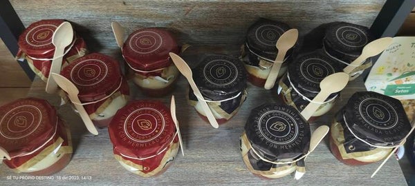 Rico manjar en dos toques ...el increíble sabor de la mermelada de pimientos con el auténtico sabor de la crema de rulo de cabra . Especial para momentos únicos